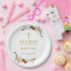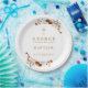 Diese modernen eleganten Terrakotta rustikalen Fall floralen Taufpapier Teller können mit Ihren Informationen in der modernen Goldtypografie personalisiert werden. Entwickelt von Thisisnotme©