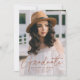 Wir laden Sie ein, mit unseren stilvollen Foto-Abitur-Einladungen den Abitur zu feiern. Die Einladungen zur Graduierung beinhalten das vertikale Foto des Absolventen mit "Graduate" in einem terracotta-braunen modernen Kalligraphieüberlagerungen. Personalisieren Sie die Front des modernen Abschlusses einladen, indem Sie den Namen, den Schulnamen und Abschluss Jahr. Die Einladung kehrt zurück, um Ihre Graduiertenparty Details und ein trendig braunes und weißes gepunktetes geometrisches Muster anzuzeigen.