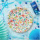 Terrazzo Muster in orange blau grün gelb auf weißem Hintergrund. Großartiges Party-Dekor für JEDEN Designer, Architekt, Veranstaltung, Party Thema, Person in JEDEM Alter. Farbenfroh, modern, Spaß. Mix und Match komplette Office / Terrazzo Collections by TMCdesigns.