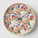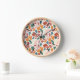 Dieses niedliche, farbenneutrale Tierbild in Terrakotta, aquamarin, rosa, orange und braun auf Elfenbeinhintergrund, ist ein lustiges Muster für eine Wanduhr für das Kinderzimmer Ihres Babys oder für jeden Raum in Ihrer Zuhause.