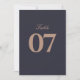 Erleben Sie die Eleganz Ihres Hochzeitsempfanges mit den Tischnummern der modernen Marine und der Rose Gold Wedding. Diese Tischnummern sind mit einem eleganten marineblauen Hintergrund gestaltet und mit schimmernden Goldakzenten der Rose geschmückt und verleihen Ihrem Fest eine Touch modernen Glamours. Jede Karte ist perfekt, um Ihre Gäste stilvoll zu führen. Sie zeichnet sich durch elegante Typografie und ein minimalistisches Design aus, das eine Vielzahl von Hochzeitsthemen ergänzt, von klassisch und formal bis chic und zeitgemäß. Die Mischung aus tiefer Marinebolde und metallischer Rose schafft einen atemberaubenden Kontrast, sodass diese Tischnummern nicht nur funktionell, sondern auch ein bemerkenswertes Dekorelement für Ihre Tischdecke sind. Diese Tischnummern sind aus hochwertigen Materialien gefertigt und sorgen für Langlebigkeit und ein luxuriöses Finish, das Ihre Gäste beeindrucken wird. Sie werden mit den passenden Dekoelementen wie goldenen Rose, Marineblättern oder Blumenarrangements für ein einheitliches und atemberaubendes Aussehen kombiniert. Machen Sie Ihren Hochzeitstag mit diesen stilvollen und praktischen Tischnummern unvergesslich, die Ihren besondere Anlass mit einer modernen und raffinierten Touch ergänzen.