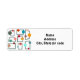 Diese Rücksendeadressen-Aufkleber haben ein modernes Design von grauen Trapeziken mit bunten Kreisen auf ihnen.