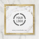 Moderner marmorierter Hintergrund mit goldfarbenen Imitaten, goldenen Rahmen und Details, mit Ihrem Firmenlogo und individuellen Produkten oder anderen Informationen, schlichtes, elegantes Design, stilvolle und schicke, berufliche Hängemarken für Produktdetails, Dankesmarken, Firmengeschenketiketten und vieles mehr.