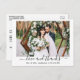 Moderne Trendy Calligraphy Script Wedding Bride and Groom Foto Liebe und vielen Dank an die Postcard