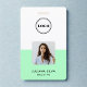 Entwickelt für einen frischen, zeitgenössischen Look. Mit einem weichen Neo-Mint-Grün-Hintergrund und einem sauberen minimalistischen Layout präsentiert dieses personalisierte Abzeichen Ihr Foto und Ihren Text stilvoll und professionell.