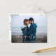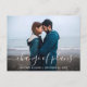 Moderne trendige Skriptänderung der Pläne Hochzeitspause Neuer Hochzeitstag Foto Postkarte