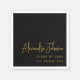 Moderne trendy Script Graduation Party custom Napkin - Black and gold Elegant Minimalistisch Design Celebrate Ihrem Absolventen im Stil mit dieser modernen trendigen Drehbuch Graduation Party Serviette mit einem eleganten schwarzen Hintergrund und eleganten, stilvollen Gold-Skript. Das minimalistische Design eignet sich perfekt für eine stilvolle und zeitgenössische Abschluss-Feier. Personalisieren Sie einfach mit unseren eigenen Vorlagen - fügen Sie den Namen Ihres Absolventen, die High School oder Uni, und das Unterrichtsjahr in Sekunden. Ideal für Abschlussfeiern, offene Häuser und unvergessliche Events. Dieses exklusive Design, das von der Künstlerin Catherine Sweetman entworfen wurde, bringt moderne Eleganz in Ihre Tischdekoration. Ideal für diejenigen, die eine saubere, elegante Ästhetik mit persönlicher Touch suchen.
