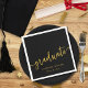 Moderne Trendy Script Graduation Party Napkin Gold und Weiß Elegant Minimalistisch Design Feiern Sie Ihren Absolvent mit diesem modernen trendigen Skript Graduation Party Custom Paper Servietten mit einem stilvollen schwarzen Hintergrund und eleganten, stilvollen Gold-Script. Das minimalistische Design eignet sich perfekt für eine stilvolle und zeitgenössische Abschluss-Feier. Personalisieren Sie ganz einfach mit unseren Vorlagen, fügen Sie den Namen Ihres Absolventen, die High School oder Uni, und das Unterrichtsjahr in Sekunden. Ideal für Abschlussfeiern, offene Häuser und unvergessliche Events. Dieses exklusive Design, das von der Künstlerin Catherine Sweetman entworfen wurde, bringt moderne Eleganz in Ihre Tischdekoration. Ideal für diejenigen, die eine saubere, elegante Ästhetik mit persönlicher Touch suchen.