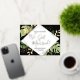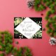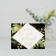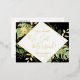 Diese moderne und elegante Posterkarte aus Gold ist ein einfacher Weg, um jedem lassen, dass er sich selbst kennt. "Wir Got Verheiratet!" zusammen mit dem Namen und dem Erfinderstandort und dem Datum des Ehepaares werden auf der Vorderseite in der gewünschten Folienfarbe angezeigt. Der Text wird durch einen vereitelten Rahmen hervorgehoben. Tropische Blätter und Farne auf schwarzem Hintergrund ragen hinter dem Rahmen heraus. Goldfolien-Spritzer verleihen dem Design ein wenig raffinierte Lustigkeit. Auf der Rückseite der Postkarte befinden sich die Details zur Hochzeitsfeier in schwarzem Text.