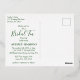 Diese elegante und moderne, tropische Goldfolie "Bridal Tea" ist eine einfache Möglichkeit, Freunde und Familie zu einer Hochzeit einzuladen. "Bridal Tea", der Name, das Datum und die Lage der Braut werden auf der Vorderseite in der gewünschten Folienfarbe angezeigt. Der Text wird durch einen vereitelten Rahmen hervorgehoben. Tropische Blätter, Blattwerk und Farne ragen hinter dem Rahmen auf schwarzem Hintergrund heraus. Goldfolien-Spritzer verleihen dem Design ein wenig raffinierte Lustigkeit. Die Rückseite der Postkarte hat die Duschdetails in schwarz gehalten.