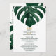 Eleganter, moderner und einfacher grüner tropischer Strand schweifen Käse-Monstera-Blatt auf weißem Hintergrund mit Imitaten bedruckte Goldfolie Typografie Sommer Hochzeitsprogramme. Dieses klassische und raffinierte Design ist perfekt für das trendige und stilvolle Ehepaar. Personalisieren Sie Ihre eigene Nachricht auf der Vorderseite sowie ein individuelles Monogramm auf der Rückseite. Das gesamte Foto-Druckdesign.