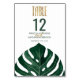 Eleganter, moderner und schlichter grüner tropischer Strand schweift Käse-Monstera-Blatt auf weißem Hintergrund mit Imitaten bedruckt Goldfolie Typografie Sommer Hochzeit Tischnummer Karten. Dieses klassische und raffinierte Design eignet sich perfekt für den eleganten, stilvollen und trendigen Hochzeitsempfang. Personalisieren Sie mit benutzerdefinierten Tischnummern auf der Vorderseite oder fügen Sie Ihre eigene persönliche Nachricht hinzu, indem Sie auf die Schaltfläche "Anpassen" klicken. Fügen Sie auf der Rückseite auch ein eigenes individuelles Monogramm ein. Das gesamte Foto-Druckdesign.