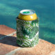 Das trendige tropische Design mit Aquarellmonstera, Bananen- und Palmenbildern auf gestreiften Blätter ist cooler.