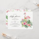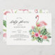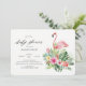 Rosa Flamingo & tropische Hibiskus Blume Babydusche Einladung Set auf weißem Hintergrund mit einem koordinierenden Rücken für eine besondere Touch