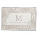 Modernes Design-Kissen aus tropischer Palmenfront mit individuellem Monogramm und Namen oder Sondertext, das in einem beige- oder neutralfarbenen Strandurlaub-Zuhause oder Küsten-Themenraum großartig aussehen wird.