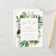 Moderne botanische Save the Date Postkarte mit Ihren Details in einem geometrischen Rahmen umgeben von Aquarell bemalten tropischen Grün und Imitaten goldenen Blätter. Die Rückseite hat Ihre persönliche Nachricht und Rücksendeadresse für einfaches Mailen. Eine elegante, Save the Date Postkarte, die sich ideal für eine Hochzeit im Sommer eignet.