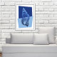 Poster in einem modernen, minimalistischen Boho-Stil aus der Mitte des Jahrhunderts-Print eines Turban Muschel in einem ozeanblauen Gefälle gegen geometrische Formen von dunkel und hellblau