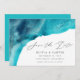 Moderne türkisblaue Wasserfarbenwellen Save The Date