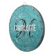 Moderne türkisfarbene Glitzer-Dartplatte mit weißem Typografienamen und schwarzem Monogramm. Personalisieren Sie mit Name und Initial.
