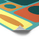 Dieses inspirierte abstrakte Retro-Muster hat einen türkisfarbenen Hintergrund und verschiedene Rechtecke in Gelb und Orange.