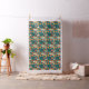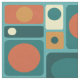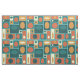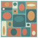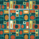 Dieses inspirierte abstrakte Retro-Muster hat einen türkisfarbenen Hintergrund und verschiedene Rechtecke in Gelb und Orange.