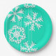 Moderne türkisfarbene und weiße Weihnachtsschneefl Pappteller