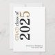 Moderne Typografie Black Gold 2025 Abschluss. Ein stylisches typografisches Design, um die Neuigkeiten Ihres Absolventen anzukündigen, mit fett großen Typografie gedreht und auf die links Seite an der Spitze in Schwarz und Gold. Personalisieren Sie die Erholung des Textes einfach, indem Sie Ihre Nachricht auf der Rückseite einschließen