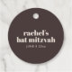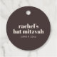 Dieses personalisierte Bat-Mizwa-Geschenk-Tag enthält einen reichhaltigen braunen Hintergrund mit elfenbeinfarbener Creme-Typografie und einem sauberen, modernen Layout. Passen Sie den Namen und das Datum an, um es an Geschenktüten, Geschenke oder Party-Andenken während der Feier anzubringen. Die runde Form und die neutrale Farbpalette machen es einfach, es mit passendem Schreibwaren und Dekor zu koordinieren. Ein einfaches Detail, das Geschenke durchdacht und zusammenhängend macht.