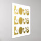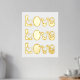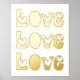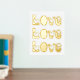 Moderne LIEBE Typografie mit weißem Goldprint in den roten Herzen.