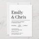 Moderne Typografie einfache minimalistische Hochzeitseinladung. Diese Vorlage enthält Ihre Namen in der modernen Typografie ganz oben, und alle Texte sind vorkonfiguriert, damit Sie sich schnell und einfach mit Ihren eigenen Worten für Ihren besondere Anlass personalisieren können.