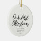Moderne Typografie Erstes Weihnachtshochzeit-Foto Keramik Ornament