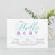 Feiern Sie einen besonderen Tag für Ihren Liebsten mit dieser modernen Baby Dusche Einladung! Dieses Design zeichnet sich durch einfache aber stilvolle Typografie " Hello Baby" mit violettem & minty blauen Thema aus.