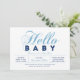 Feiern Sie einen besonderen Tag für Ihren Liebsten mit dieser modernen Baby Dusche Einladung! Dieses Design bietet einfache aber stilvolle Typografie " Hello Baby" mit blau & marinebarbenem Thema.