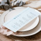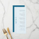 Fügen Sie dem Bar Mitzvah Ihres Sohnes ein besonderes Detail hinzu. Dazu wählen Sie aus unserem hellblauen, marineblauen und weißen Bar mitzvah Party Dinner Menü, das mit feinem, modernem Typografie und einem lässigen Ambiente aufwartet.