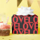 Liebe rotes und schwarzes modernes typografisches Muster niedlich Geschenkpapier. Rote Typografie Muster, schwarzer Hintergrund. Ideal für den Valentinstag und die Ausdrucksformen der Liebe.