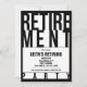 Moderne Typografie, Party Einladungen für die Altersvorsorge. Setzen Sie sich mit dieser kühlen und modernen Party Einladung in Ihre goldenen Jahre. Erstellt mit einfachem Text und mutiger Typografie, wird diese Einladung zur Pensionierung Ihren Gast beeindrucken, wenn Sie sie empfangen. Die Party-Koordination erfolgt im MetroEvents-Shop auf Zazzle. Zusätzliche Party Einladungen für den Ruhestand sind unter Metro-events.com verfügbar.