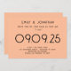 Moderne einfache Typografie Peach Wedding. Moderne Eleganz mit diesem hübschen pastellfarbenen, vollständig anpassbaren, stilvollen Textdesign. Personalisieren Sie einfach die Wörter und, wenn Sie eine Hochzeitswebsite haben, automatisch generieren Sie einen QR-Code für sie auf der Rückseite, indem Sie die Beispiel-URL durch die URL Ihrer Hochzeitswebsite ersetzen. Sie können den QR-Beispielcode löschen, wenn dies nicht erforderlich ist, indem Sie die Option Weitere bearbeiten wählen. Auf jeder Seite können Sie auch Textfarben, Stile und Hintergrundfarben bearbeiten.