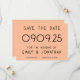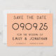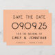 Moderne Typografie Peach Wedding. Moderne Eleganz mit diesem hübsch pastellfarbenen, vollständig anpassbaren, stilvollen Typografie-Design. Einfach den Text personalisieren und, wenn Sie eine Hochzeitswebsite haben, automatisch einen QR-Code für ihn auf der Rückseite generieren, indem die Probe-URL durch die URL Ihrer Hochzeitswebsite ersetzt wird. Sie können den QR-Beispielcode löschen, wenn Sie ihn nicht benötigen, indem Sie die Option Bearbeiten weiter verwenden. Auf jeder Seite können Sie Textfarben, Stile und Hintergrundfarben bearbeiten.