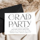 Modernes grad Party lädt mit "Grad Party" in trendiger schwarzer Schrift mit dem Abschluss Jahr. Personalisieren Sie die Schwarz-Weiß-Abschlussfeier lädt mit dem Namen und Party des Absolventen unten gezeigt. Die kühnen Typografie-Graduiertenfeiern eignen sich hervorragend für Absolventen der Highschool und der Uni.