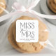 Personalisieren Sie Ihr Brautparty mit diesen schicken Aufklebern "Miss to Mrs." mit eleganter moderner Typografie. Perfekt für Gastgeschenke, Dekorationen oder gestylte Umschläge. Passende Artikel in unserem Shop Cava Party Design.