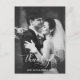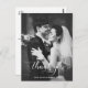 Moderne Typografie Hochzeit Foto Danke Postcard mit elegantem, weißem Schrift auf der Vorderseite und schwarzem Drehbuch auf der Rückseite. Fügen Sie einfach Ihr individuelles Foto und Text auf der Vorder- und Rückseite der Postkarte hinzu.
