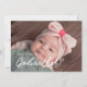 Modern und trendig: Wählen Sie eine Fotokarte für Ihr Godmaterangebot. Einfach mit Ihrem Babybild und Ihrer persönlichen Nachricht für die zukünftigen Godeltern personalisieren. Vollständig anpassbare Schriftart- und Hintergrundfarben.