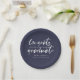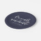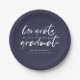 Moderne Typografie fett gebürstete Schrift in weiß, personalisierte Graduierungsparty Platte. Die Hintergrundfarbe in klassischem Marineblau kann individuell angepasst werden.