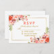 Aquarellfarbene Coral Gold Wedding RSVP Card - Goldrahmen