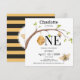 Schönes Mädchen, das eine Geburtstagsfeier einlädt, mit einem wunderschönen Bienendesign inklusive Bienengehänge, wunderschönen Bienen Persönlich gestaltet. Dieses schöne Geburtstagsfest mit Mädchennamen und Party-Details wie Datum, Uhrzeit, Ort, Adresse und uAwg. Die Rückseite der Einladung zeichnet sich durch eine wunderschöne Bienenmedallion mit modernen schwarz-gelben Streifen aus