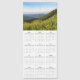 Design besteht aus 2020 Kalender mit handgeschriebenem Schriftart und wilden Outdoors gefüllt mit gelben Blumen und Bergen.