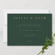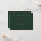 Diese eleganten, minimalistischen Interaktionskarten zeichnen sich durch moderne Schriftzeichen und einen sauberen Text aus, der Ihnen ein schlichtes, stilvolles Grün- und Golddesign verleiht, das Sie zur Liebe bringen. Fügen Sie benutzerdefinierten Text hinzu, um alle zusätzlichen Informationen zu liefern, die für Ihre Gäste benötigt werden. Gerne senden wir Ihnen eine Nachricht mit Fragen zum Thema Design - ich helfe Ihnen gerne!