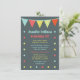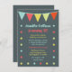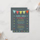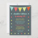 Eine sehr moderne und trendige Zirkus-Einladung, die für Geburtstage, Babyduschen oder andere Veranstaltungen genutzt werden kann. Es zeigt die Flags an der Spitze, wobei Punkte die Einladung umkreisen. sehr modern, einfach und trendig.