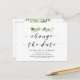 Das ist das moderne Sommergarten, im Schwarzen Schriftart, Hochzeitsfeier Einladung Rescheduled (Datum ändern) Postkarte. Es ist der perfekte und elegante Weg, um den Zeitplan Ankündigung für Ihre Freunde und Familie zu machen.