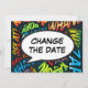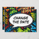 Personalisieren Sie mit Ihren Namen und Details, um die Änderung des Datums Ihrer besonderen Veranstaltung anzukündigen. Comic Buch Pop Kunst themed modern, Spaß Retro-Design, perfekt für Hochzeiten, Brautpartys, Babyduschen, Taufen, Verlobungen, Jubiläumsfeiern, Abschlüsse, Geburtstagsparty und andere besondere Veranstaltungen das ganze Jahr über! Ein cooles, trendiges und unterhaltsames Design, das den wackeligen Zap Pow in den Tag legt. Entwickelt von Thisisnotme©
